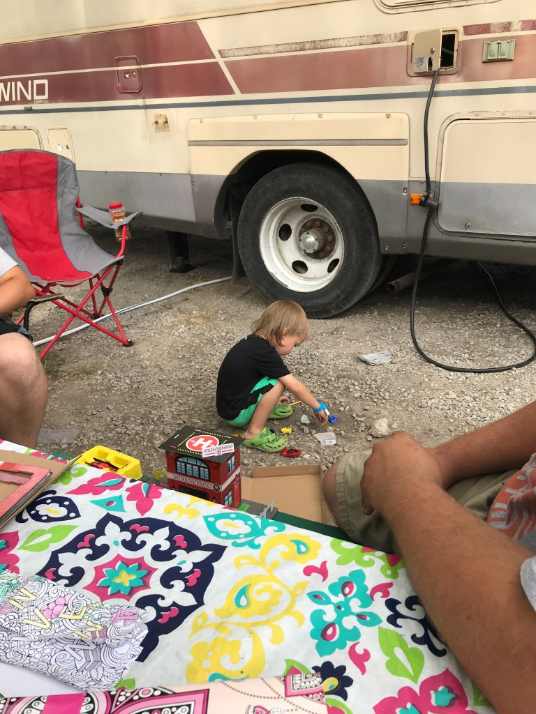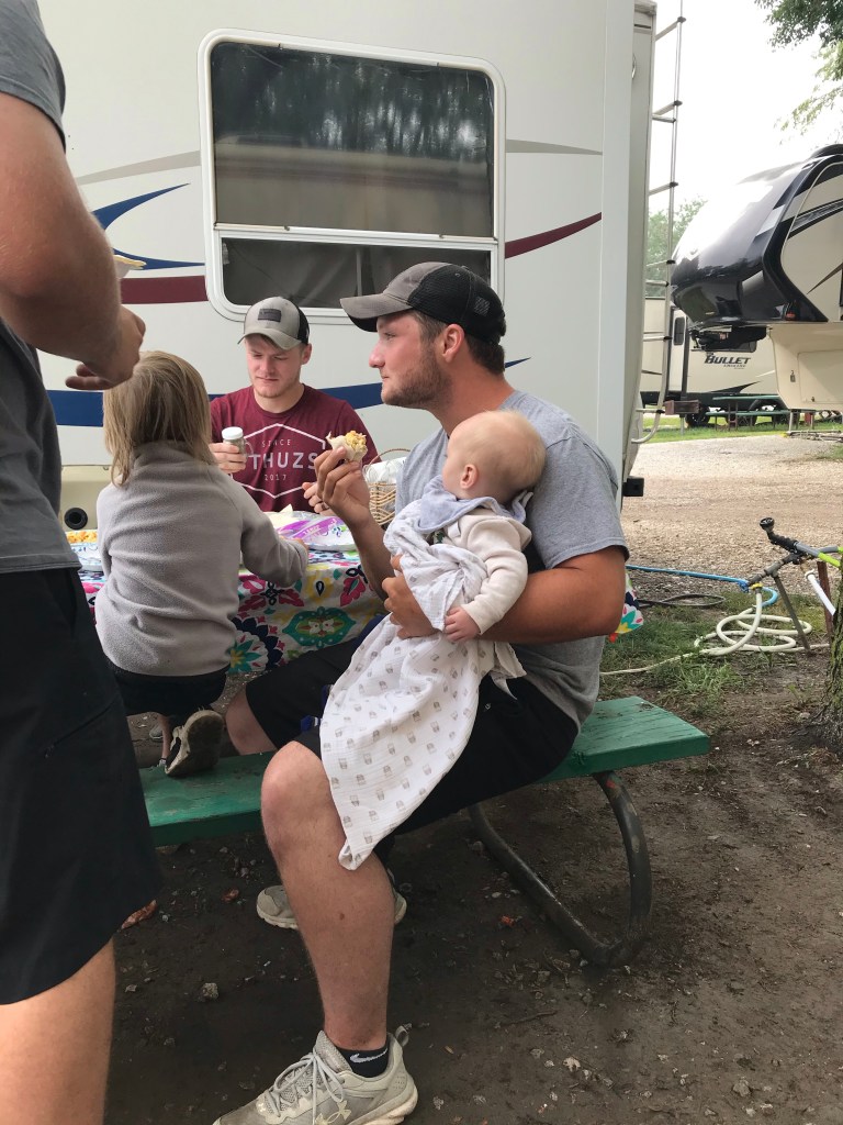 As per usual, Austin and I decided to take our summer vacation during the hottest part of the summer. This year we decided to go with friends making it the Francis, Deters, and Wichman (Freterman) family vacation! We woke up early the day we were going to leave and were both ready to tackle the last minute lists before we left. That meant Austin was going to work to take care of a few service calls and I was getting everything packed and trying to get the house in decent shape before we left. Austin’s day started off rough and delayed his coming home to help with last minute loading. After lunch, I had to call in backup when one of the kids *Emery* got poop all over Gran’s bedroom. My mom came over and helped get Emery and the room cleaned up and I got Orwell to go down for a nap. This was about the part of the day that I started to have flashbacks to our last RV trip. If you know, you know!