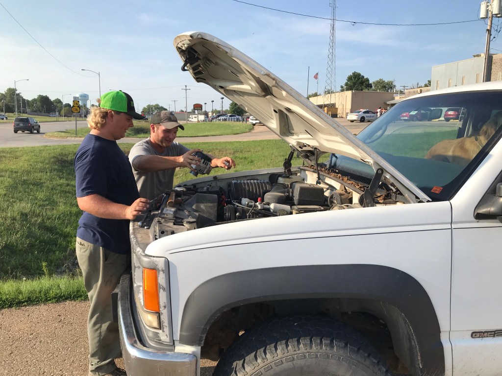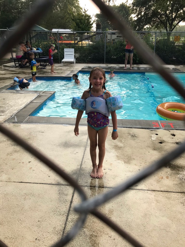 Austin came home, we got the last minute things loaded up, the Deters showed up, loaded their camper, and we got on the road. As we were getting ready to pull out we realized that our A/C on the camper wasn’t working but we decided to get on the road and deal with it when we got to where we were going. After about 30 minutes on the road, Drew and Hailey texted to let us know that we needed to stop to get an alternator for their truck. We just happened to be going through Holton so we were able to stop at the O’Reilly’s there and find what we needed. After about 15 minutes of parking lot loitering, we were back on the road! Ellie said something about us always breaking down. I don’t know where she got that idea and Austin responded “if vacationing was easy, everybody would do it!”