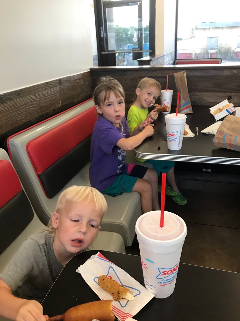 Things started looking up when we found a Sonic with indoor seating and air conditioning!