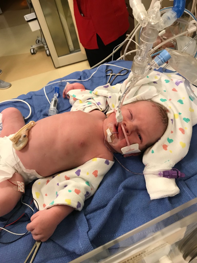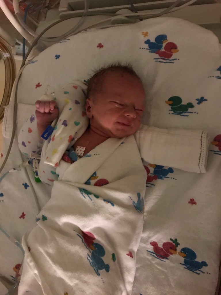When he was in the labor and delivery room, someone came in to tell him that Orwell had been born and was “floppy and unresponsive.” He had expected that the person was going to take him to the OR so he could be there for the delivery so he was immediately confused and frustrated. He went to the NICU right away and spent a few hours with Orwell. When he came back into my room and told me what he knew, he showed me a picture of Orwell that broke my heart.