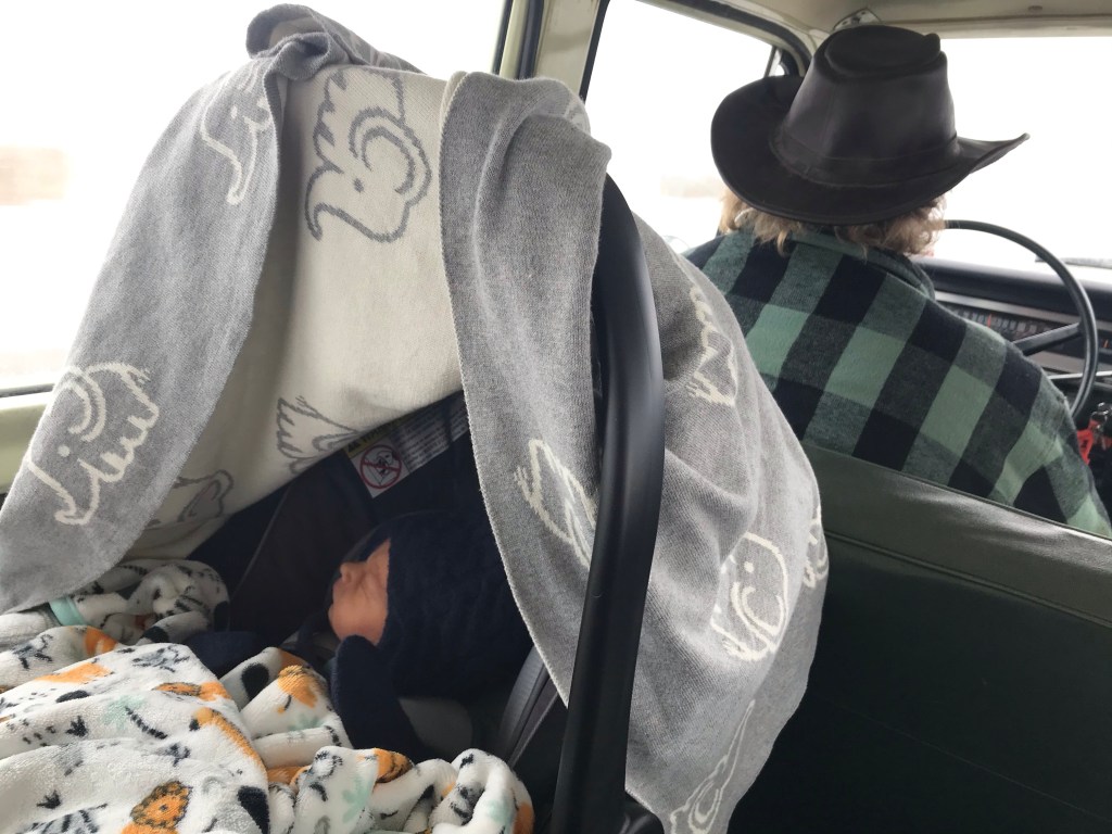Austin just happened to be working in Topeka that day so I called him to tell him. We both decided to take our time and wrap some things up before we headed to KC. Austin was coming home from work and we were ready to load the car up. Austin walked outside to put the car seat in the car and immediately came right back inside to tell me that he was getting a migraine and needed to go to bed. His migraines come on really quickly and if he doesn’t get to sleep early enough to sleep them off, he will be in too much pain to fall asleep. Because we had started packing our house up months prior to this, I’d packed all of our baby blankets thinking we’d be in a new house by the time we had the baby. This was one of the coldest weekends of the winter so I knew I needed to go run a few errands before I went to the hospital. My mom and I loaded the kids up and went to town. I grabbed a few warm baby blankets, a hat, and gloves then we headed back to their house.