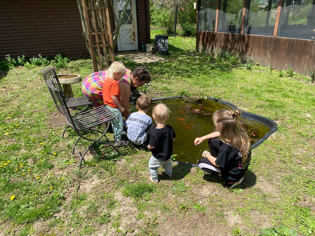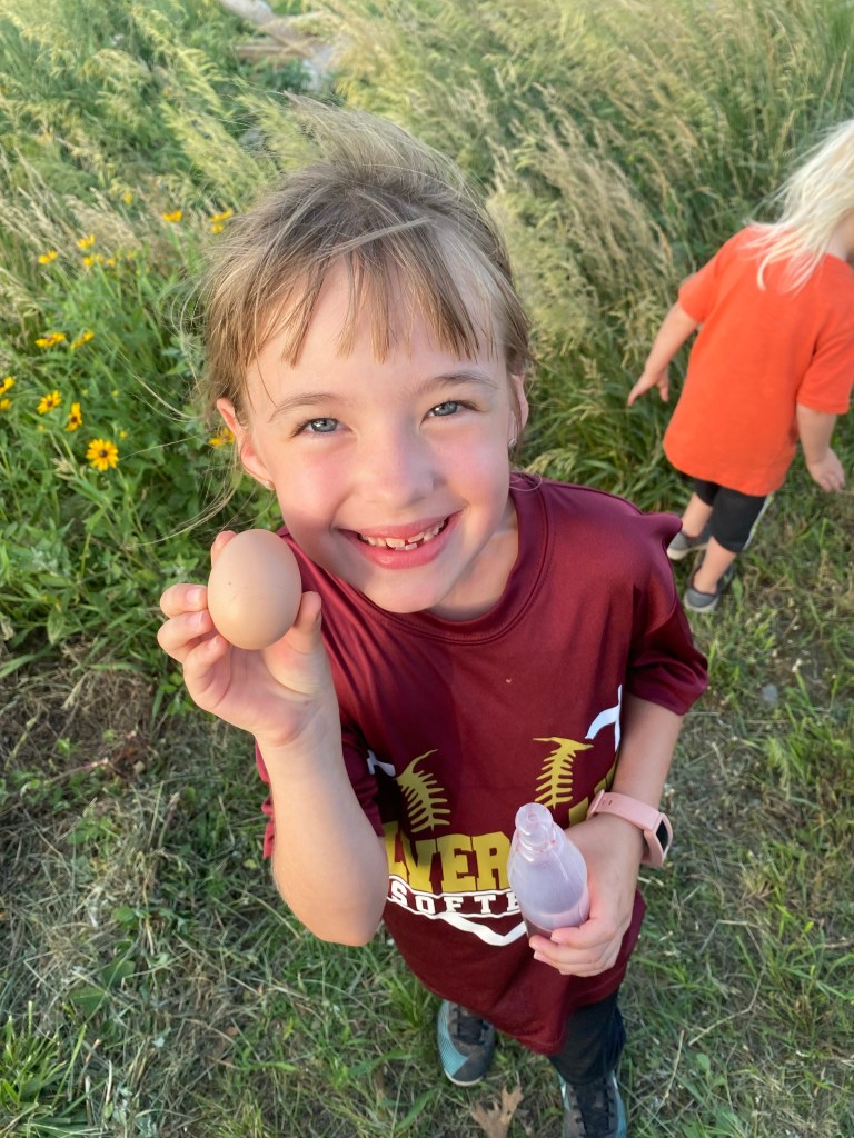 We got some chickens this spring. We share them with our neighbors and tag team taking care of them. We started with 25 and by some miracle we didn’t lose any until the fall. The kids love going to the coop to check for eggs every day and feeding the chickens everything that they don’t want to eat themselves. Gran has asked me at least once if he can sleep in the coop with them.