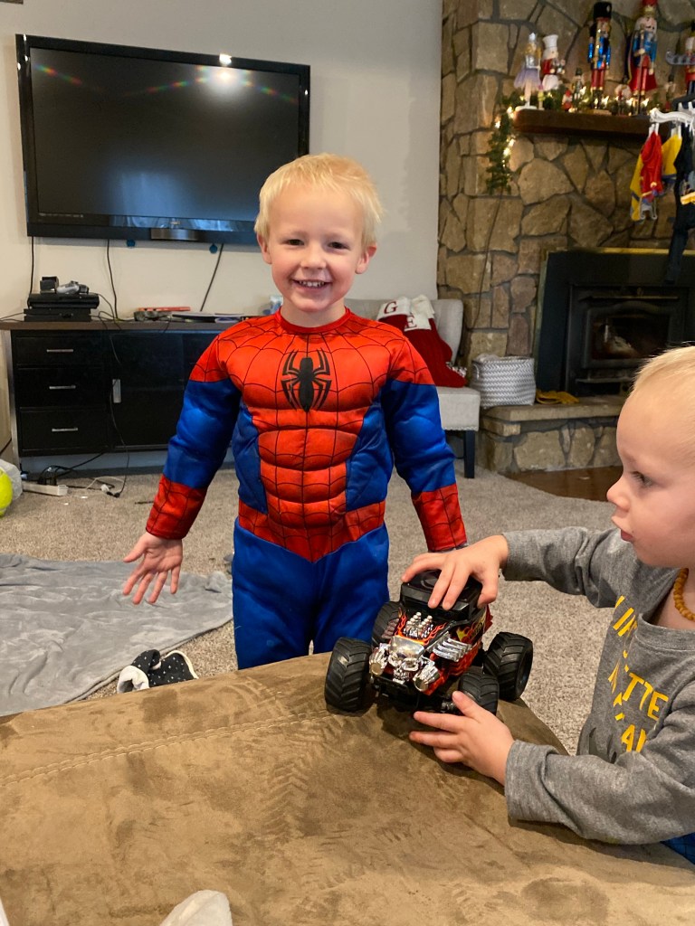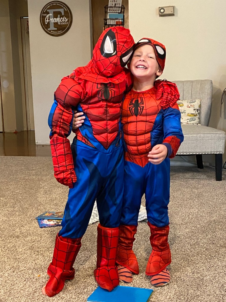 After Halloween this year Emery put on his spider man costume and just decided that he’d never be taking it off. As I’m typing this, he’s on day 27 of wearing it both day and night. We’ve convinced him a few times to take it off so we can wash it but he asks me every 10 minutes when it will be dry.