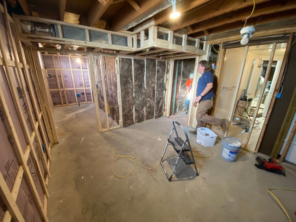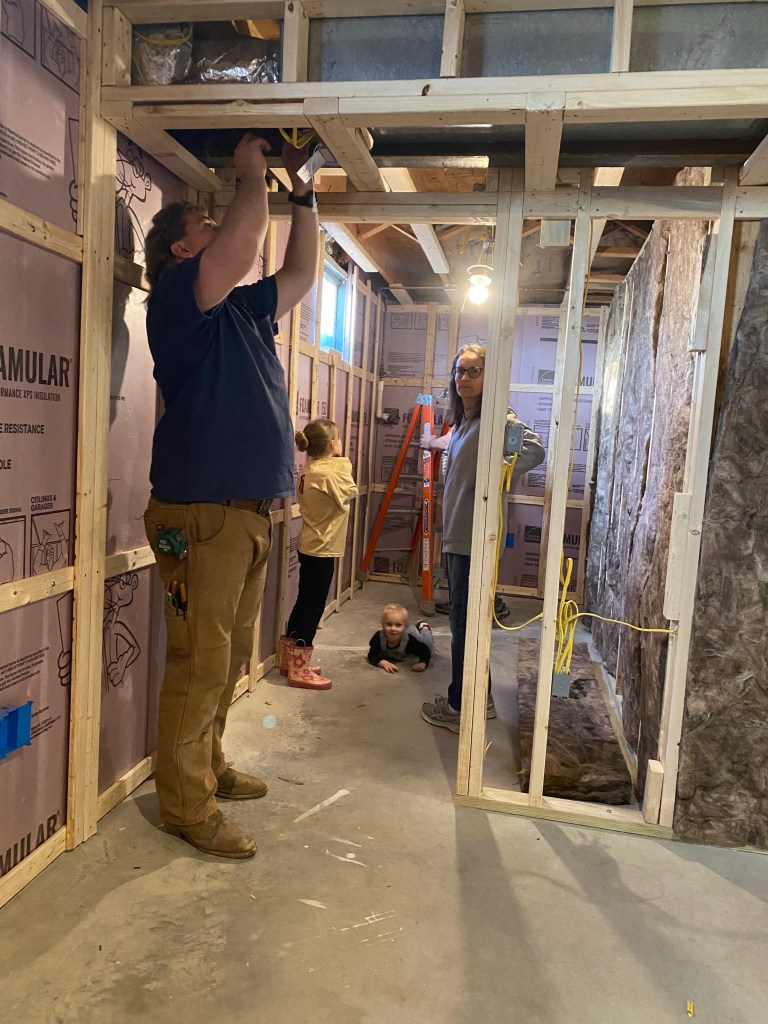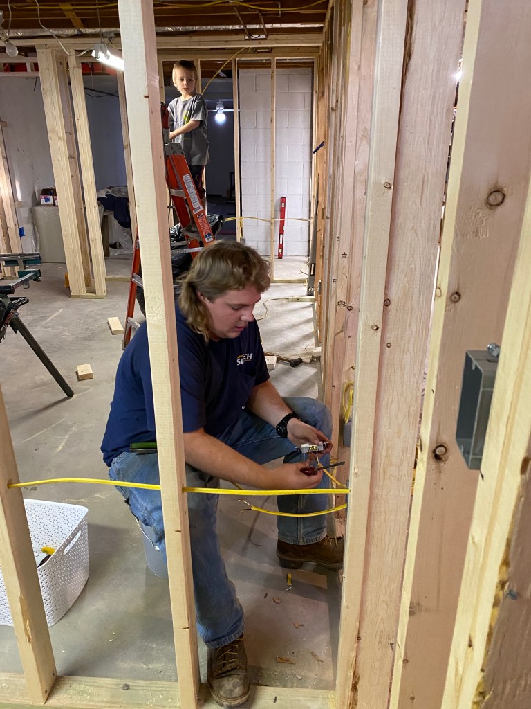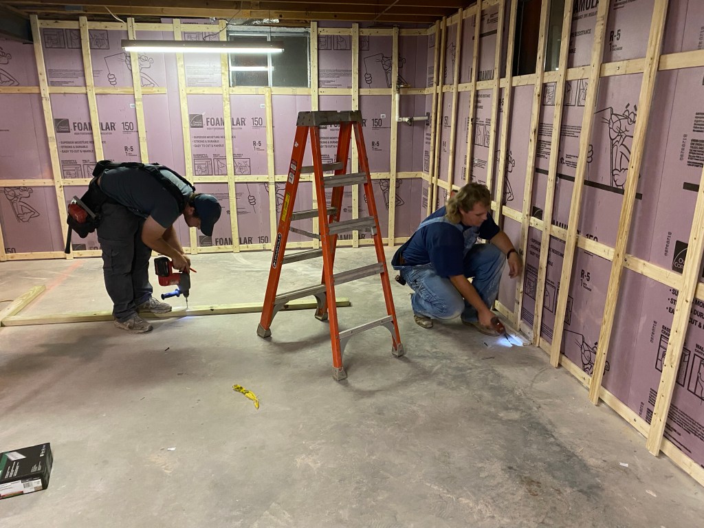 When we got home we got busy on the basement again. Drew spent some time helping Austin get walls framed and then Austin started on the electrical.