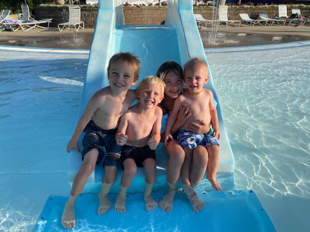 The big kids all took swimming lessons this summer and loved every minute of it. They are real water bugs. Our summer was spent mostly outdoors doing all of the summer things. Our kids are not indoor kind of people which we love.
