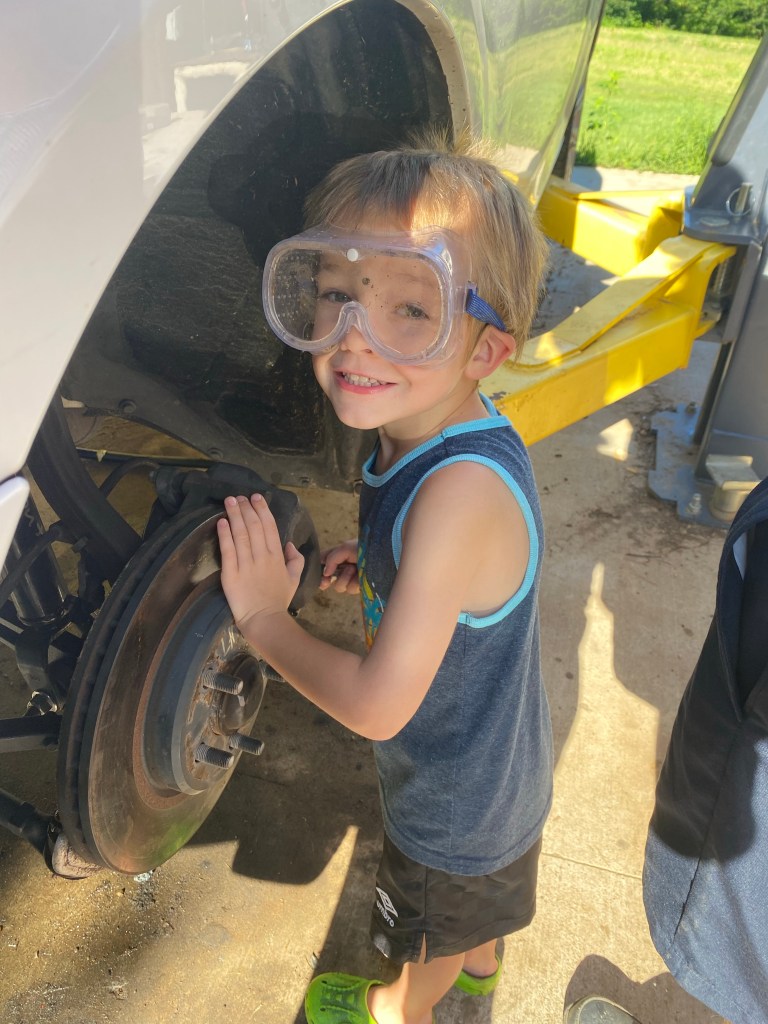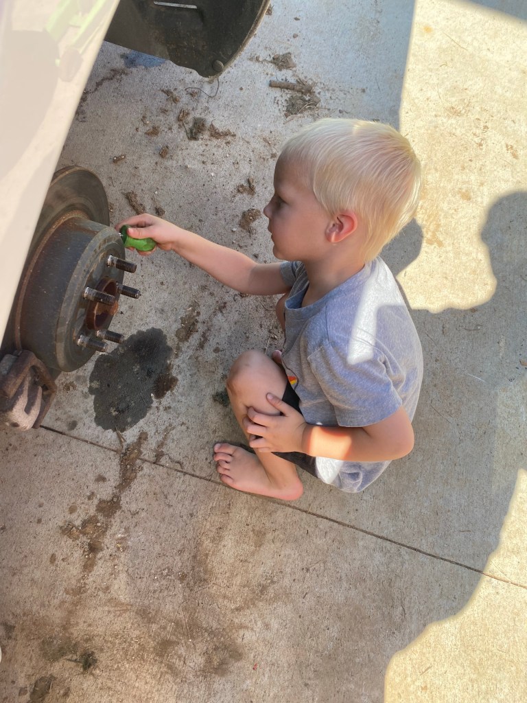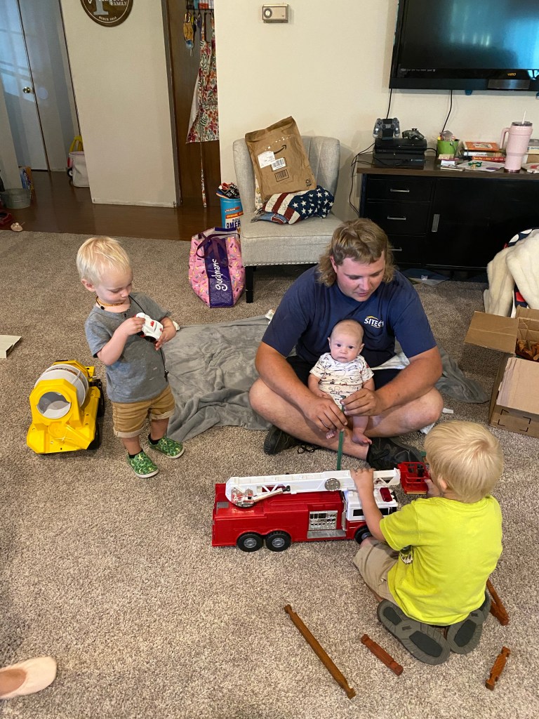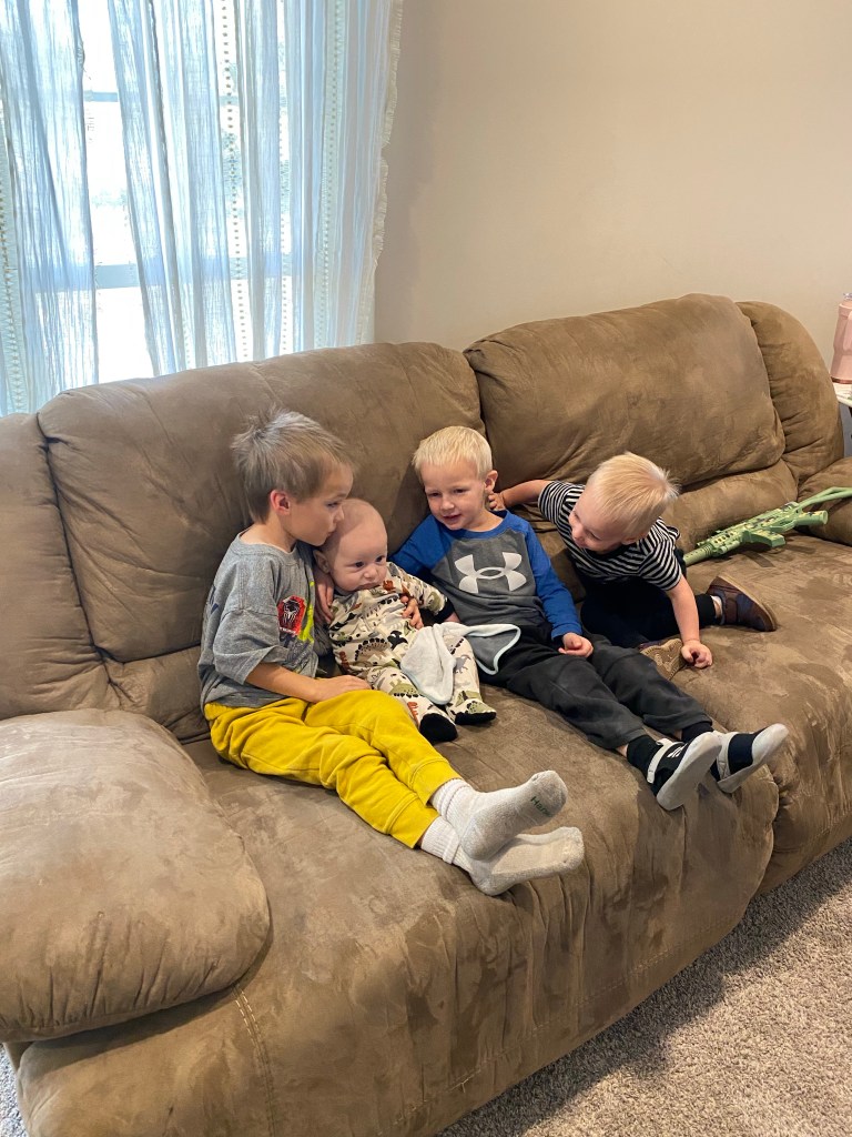 When school started, I started watching our nephew Banks during the week. We are at that number of kids around here where you really don’t notice one or two more. He’s a trooper! He tags along with us no matter what we are doing and puts up with a lot from our kids.