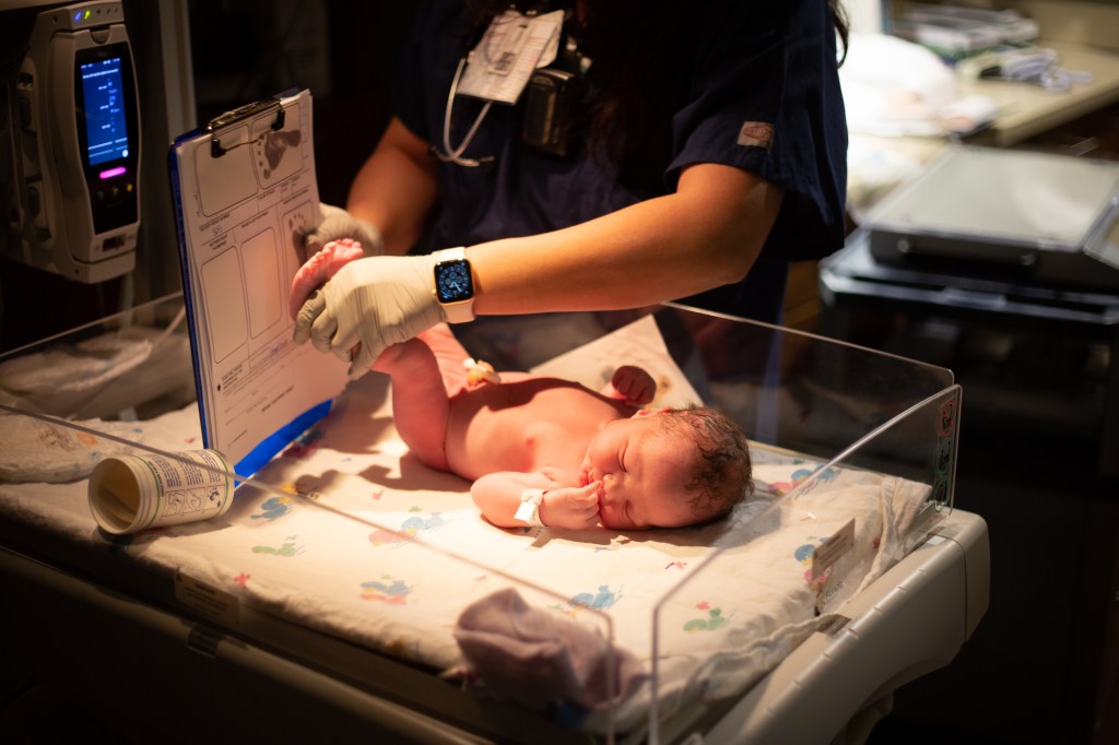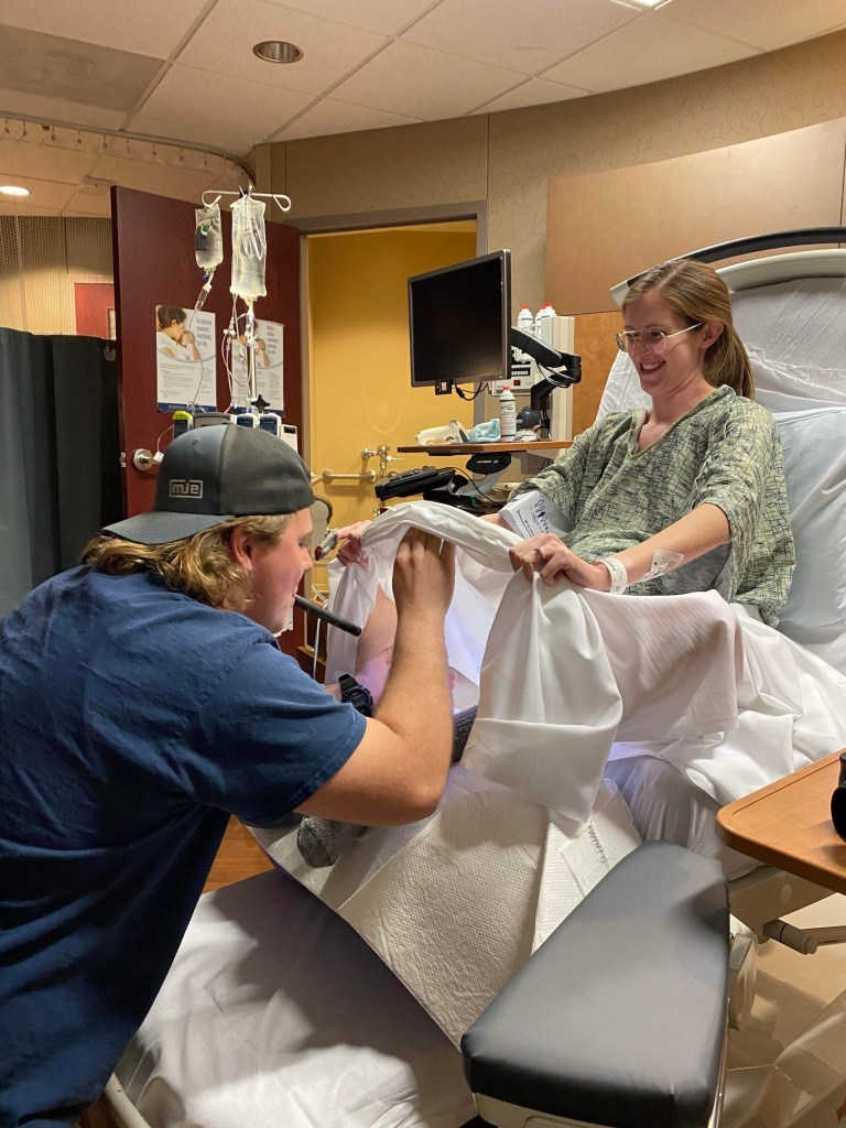 When we got to Kansas City, we decided to go walk at the mall and have lunch before we checked into the hospital. Austin took some work calls and we did some laps around the mall. We got to the hospital after lunch and started getting settled in. When I got there and my midwife checked me, she said I was 5.5cm and was ready to get into a room to labor down. We spent the next seven hours hanging out in our room while I bounced on the exercise ball and paced the room. Austin paced the room most of the day and I was thankful that he happened to have his “fidget toy” in his pocket to keep him occupied.